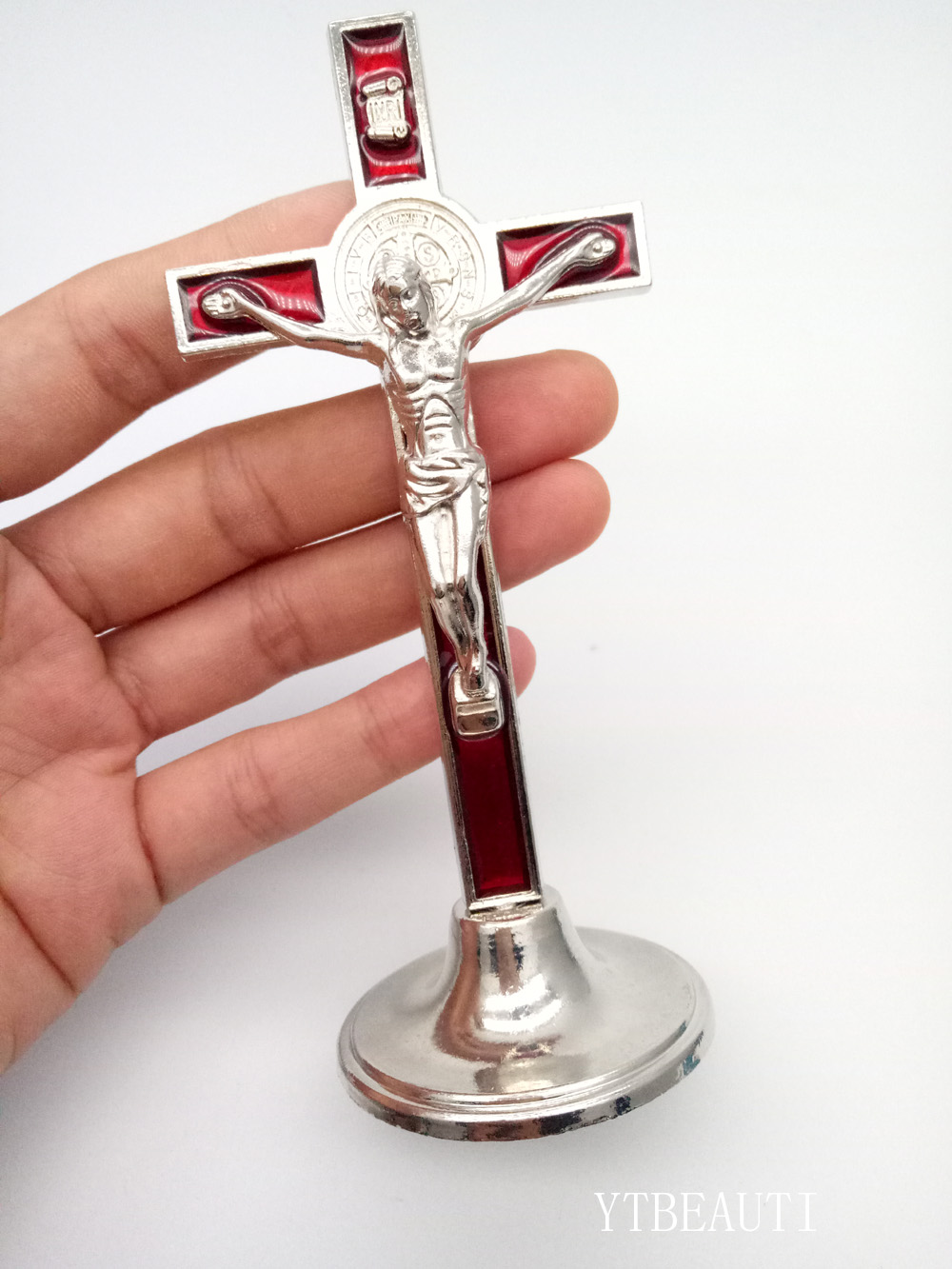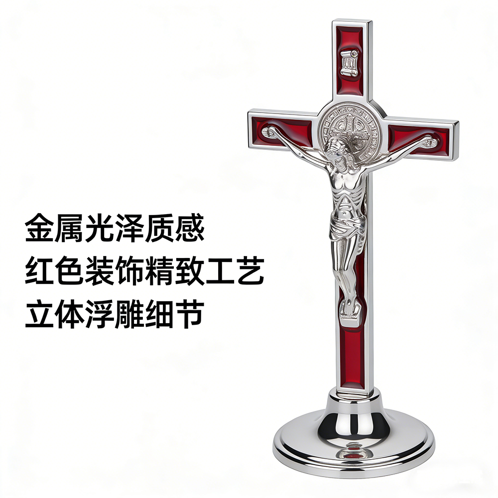 5.2*11.5红色滴油金属十字架办公室家用摆件小摆台饰品