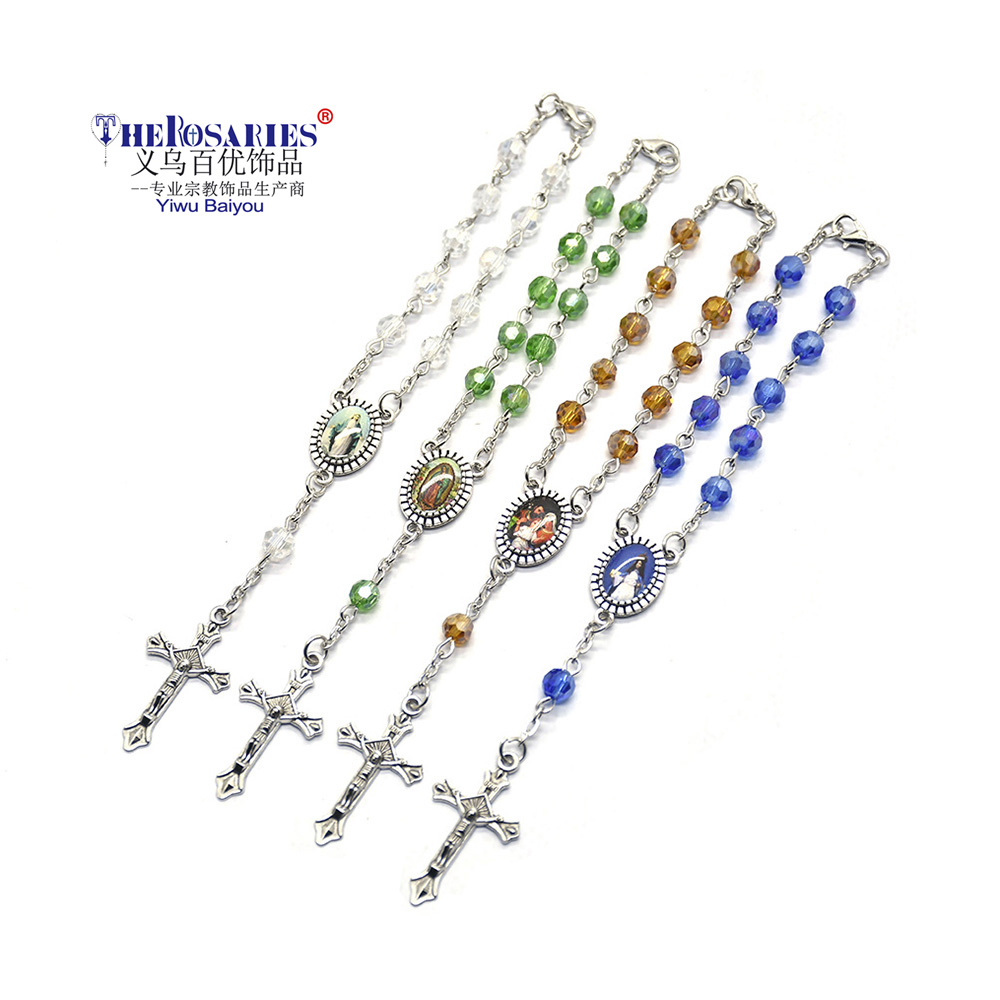 十字架手链外贸电商四色水晶念珠手链饰品某教祈祷珠生产商