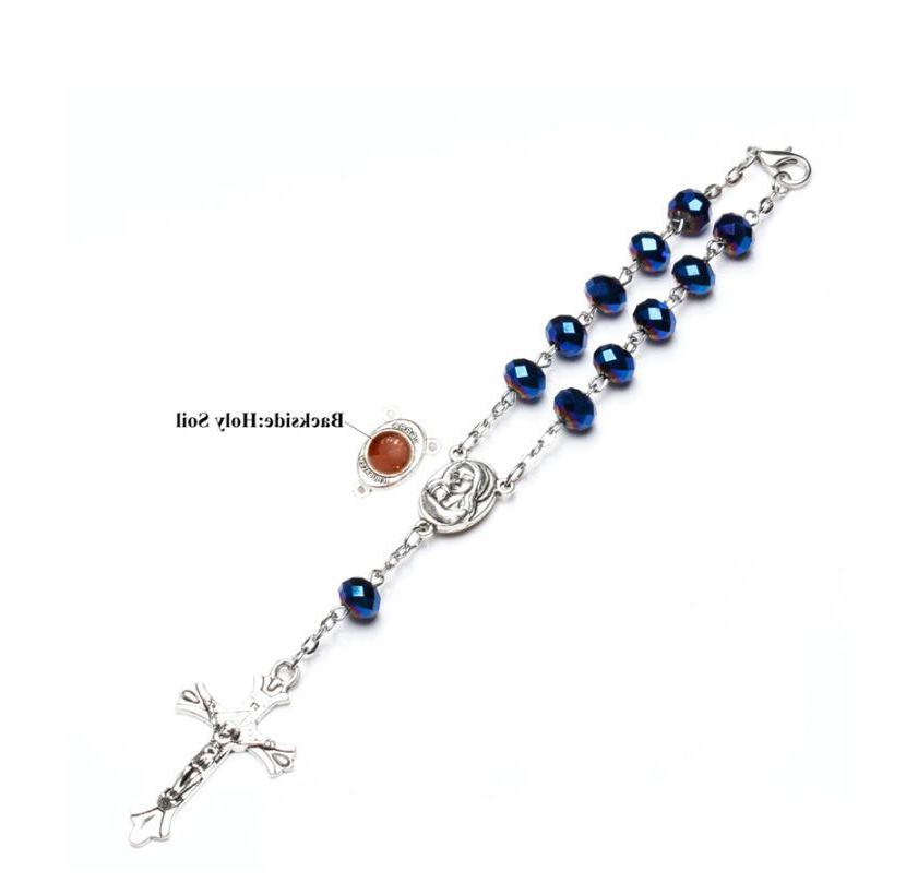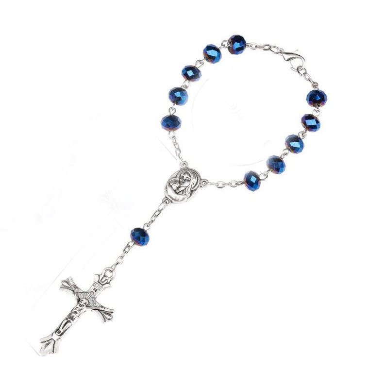 蓝光十字架水晶玫瑰念珠手链手串手环弯针串珠Rosary bracelet