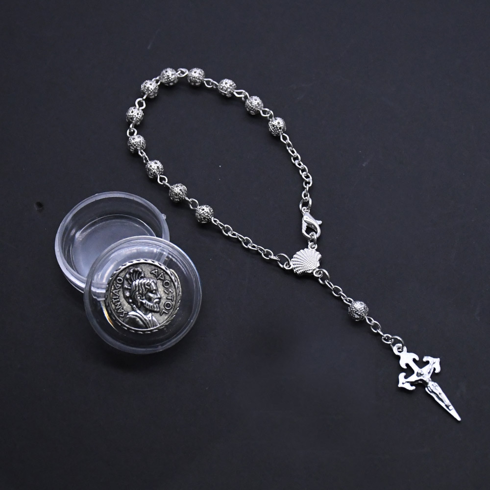 盒装6mm珍珠古银念珠手链Santiago圣地亚哥风十字架念珠手串