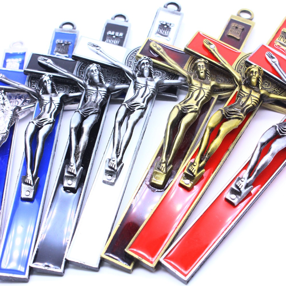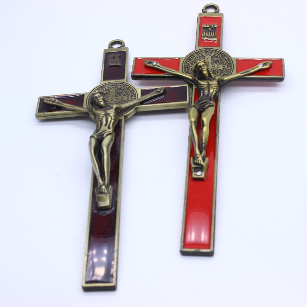 (古青铜+红)9.2*19cm金属十字架挂件办公室家用摆件饰品