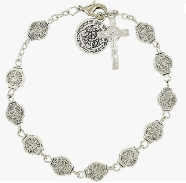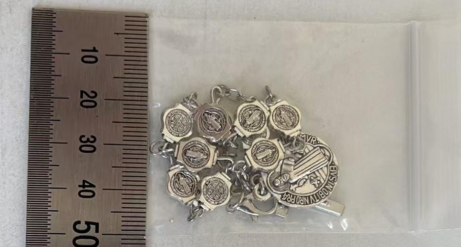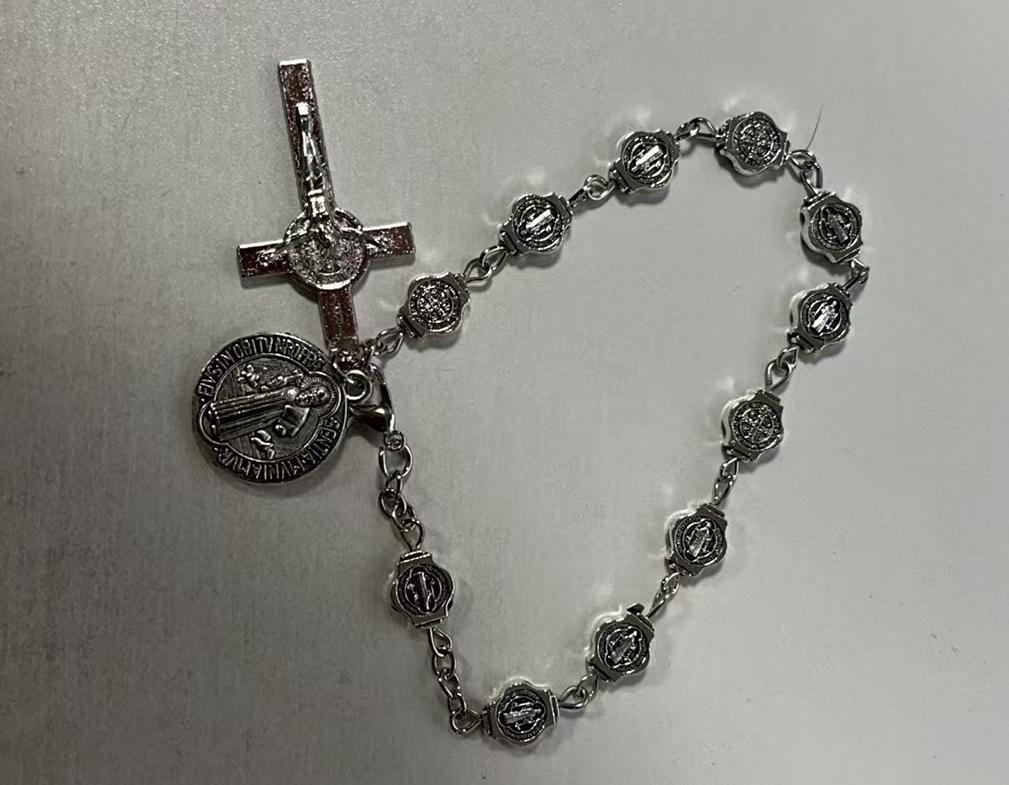 复古金属圣本笃念珠手链十字架手串手环弯针