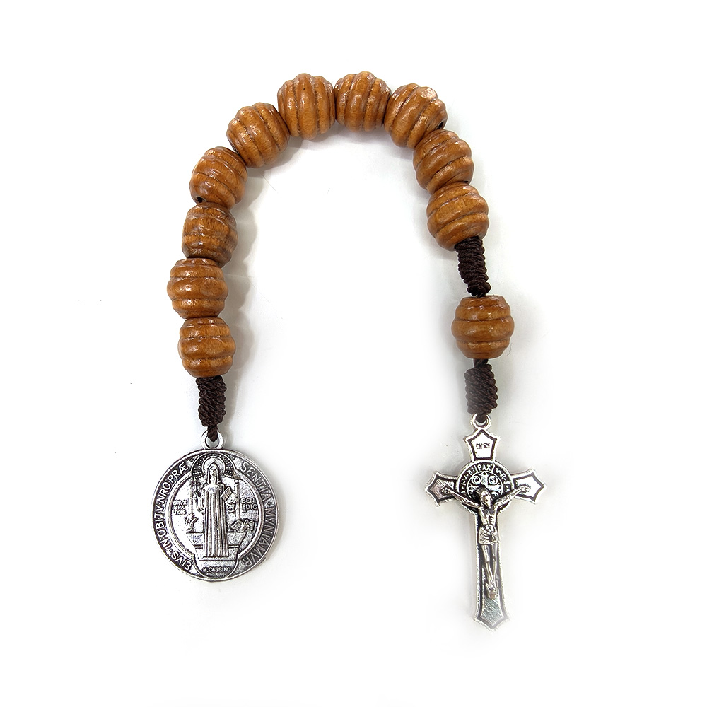 古银)One Decade十字架圣本奖章口袋念珠棕色木珠手串