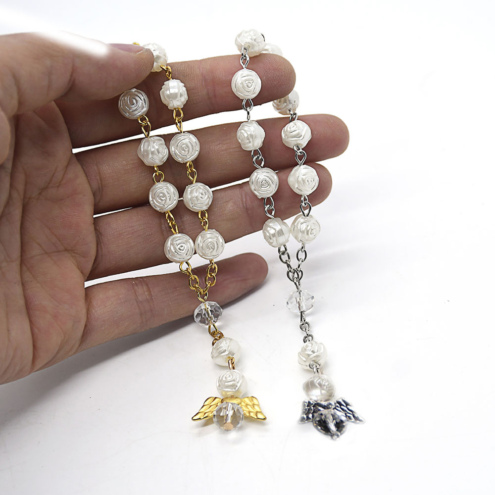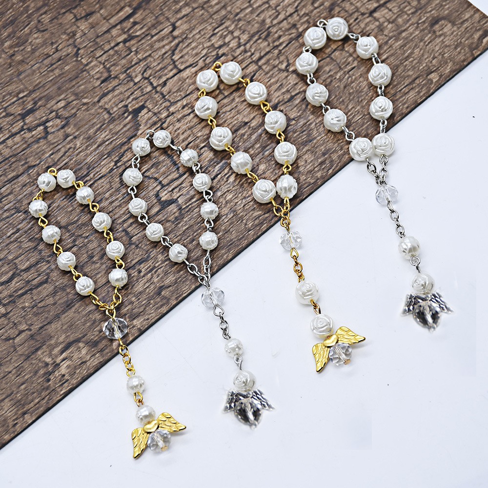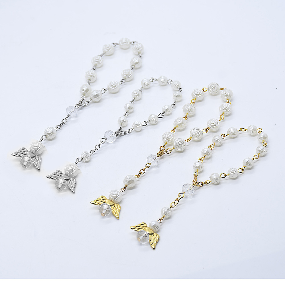 (金)天使翅膀洗礼珠念珠手链玫瑰花婚礼爱心手串珠串礼品赠品
